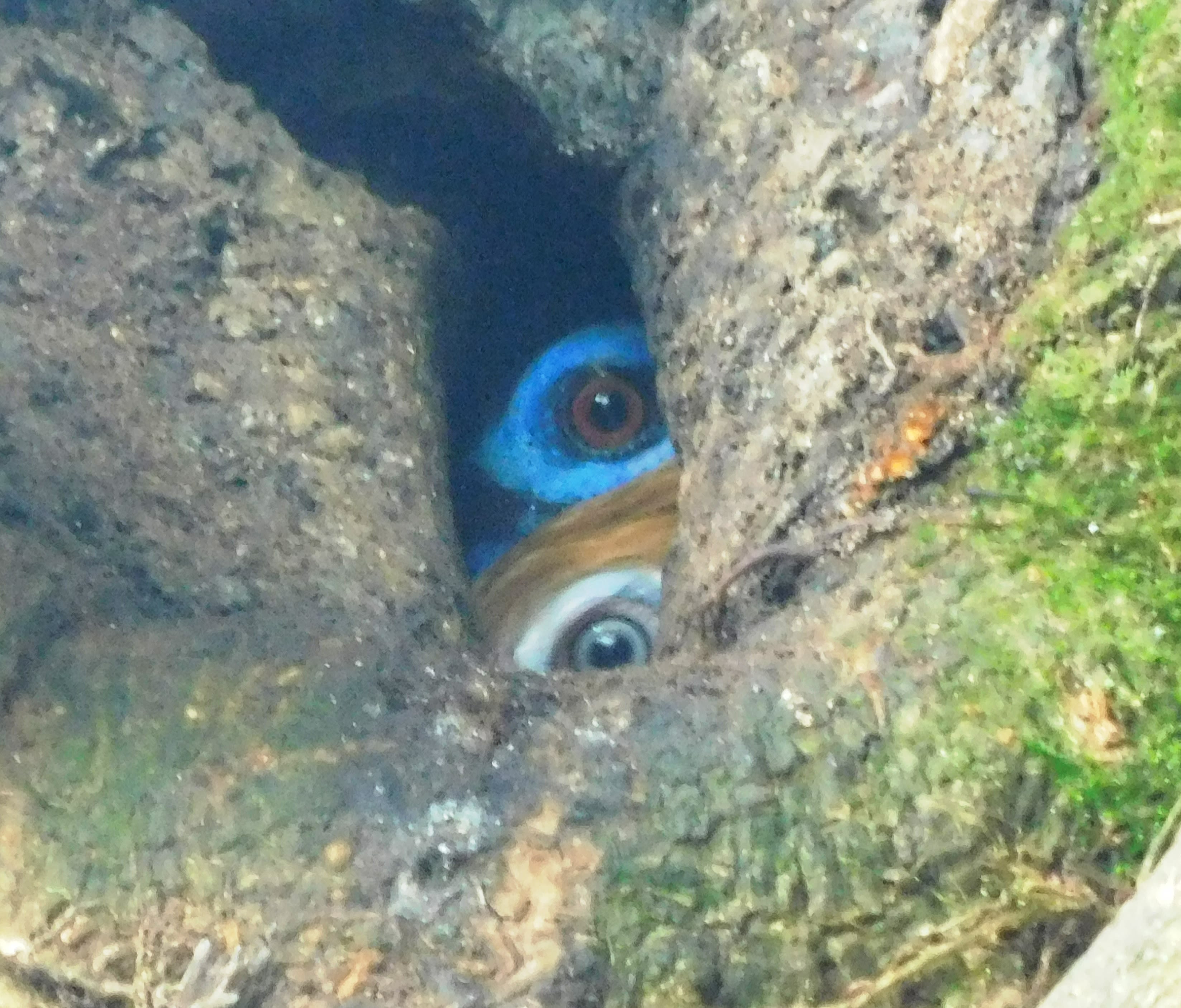 Taring Tachang, the nest protector who was monitoring this nest shared that determining the occupants of this nest was very puzzling for him. In his observations, he had recorded that the nest was first occupied by a Great hornbill pair on 28th March, but was abandoned subsequently on 31st March.